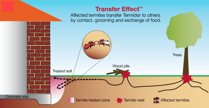 - Termidor’s advanced transfer properties controls the termite colony, reducing the risk of termites returning for up to 8 years.